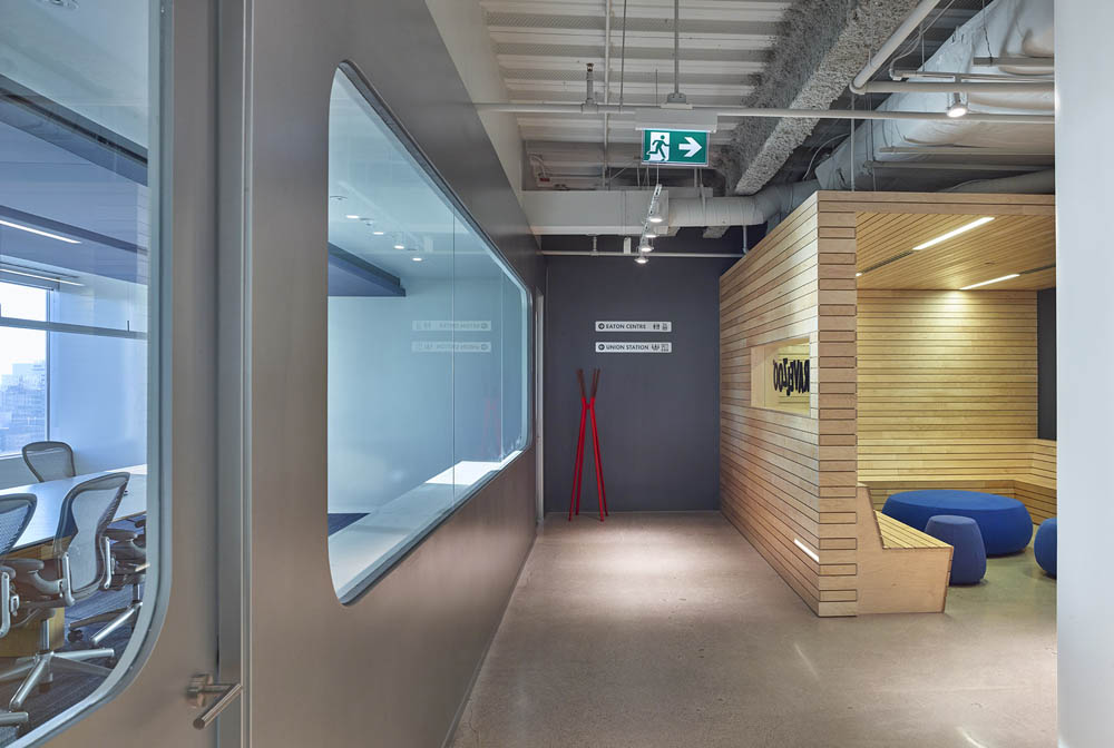 客户对裸露天花板的渴望带来了挑战:建筑物的结构不利于那种细节,但在金属网状天花板中找到了一个优雅的解决方案,它使空间感觉更加开放,同时掩盖了上面粗糙的纹理。