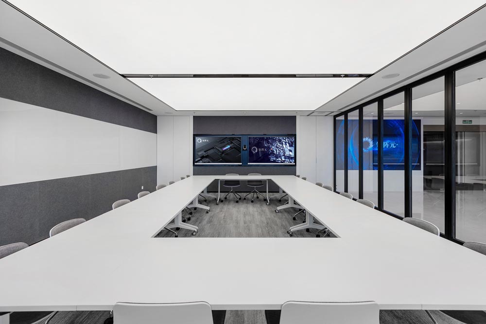 整个空间呈现出轻盈的姿态,大面积留白给予空间灵动感,曲线流动的造型就像一根善于变化而纤细不惊的丝线,即将牵引出一次次关于未来的探索。