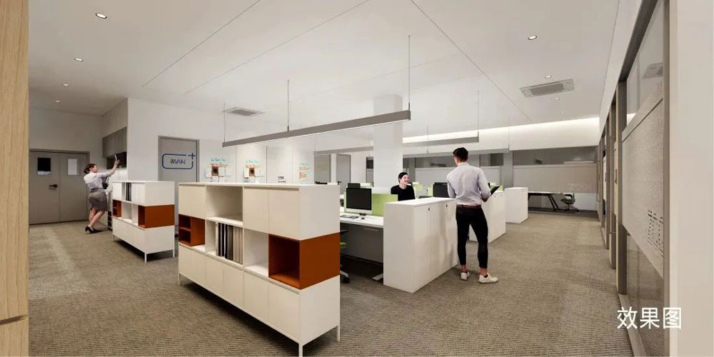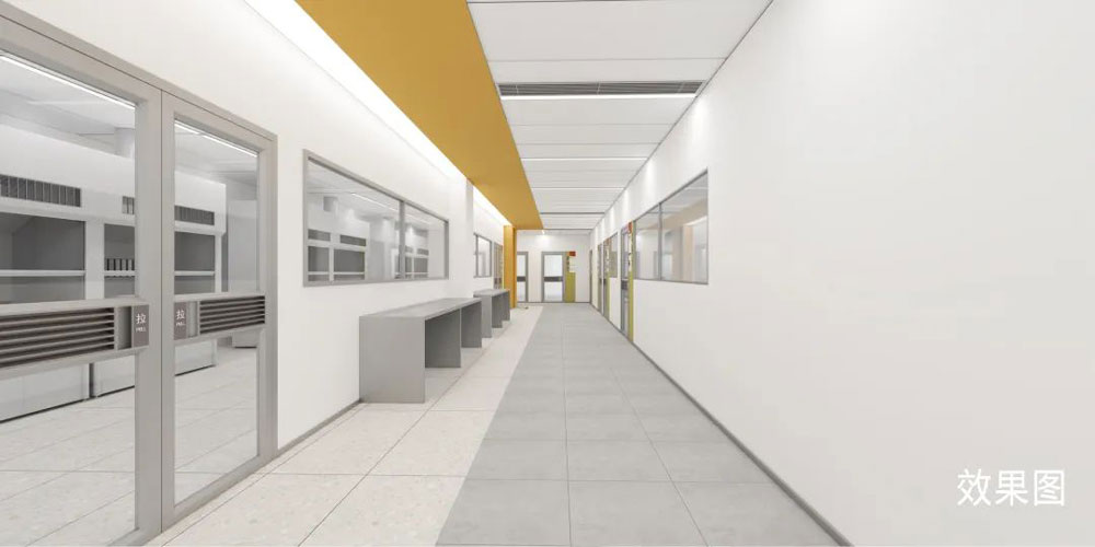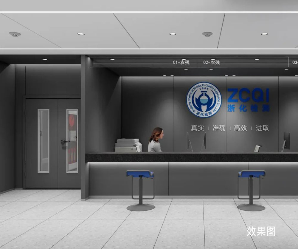 本案以简约、现代的室内设计改变了检测机构固有形象。场地分为公共接待区、工作区、实验区,强调功能区块划分以提高办公效率,实现如何最大限度地利用可用空间。