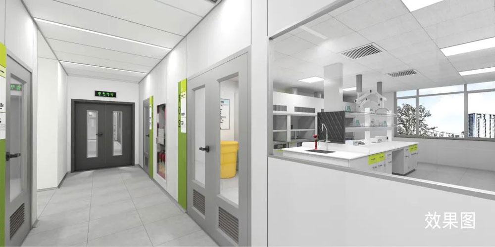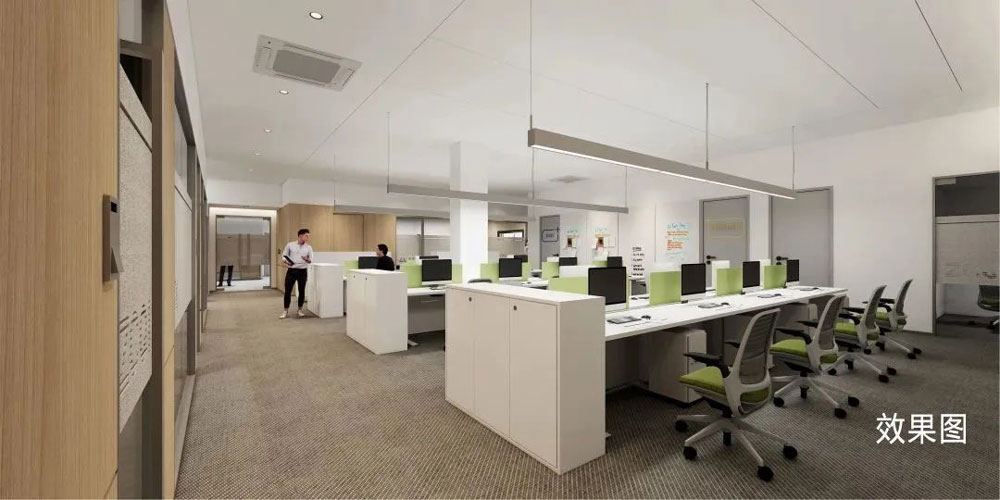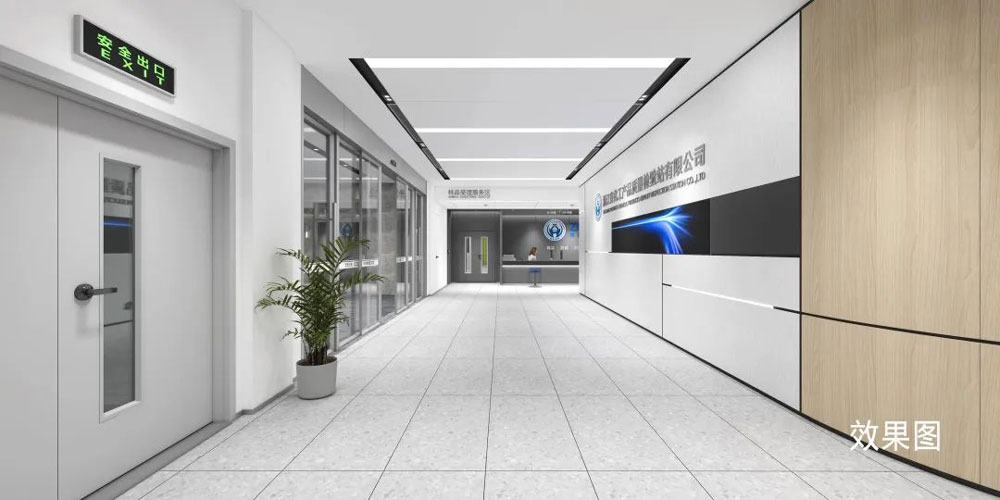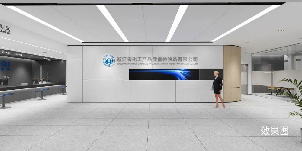 本案以简约、现代的室内设计改变了检测机构固有形象。场地分为公共接待区、工作区、实验区,强调功能区块划分以提高办公效率,实现如何最大限度地利用可用空间。